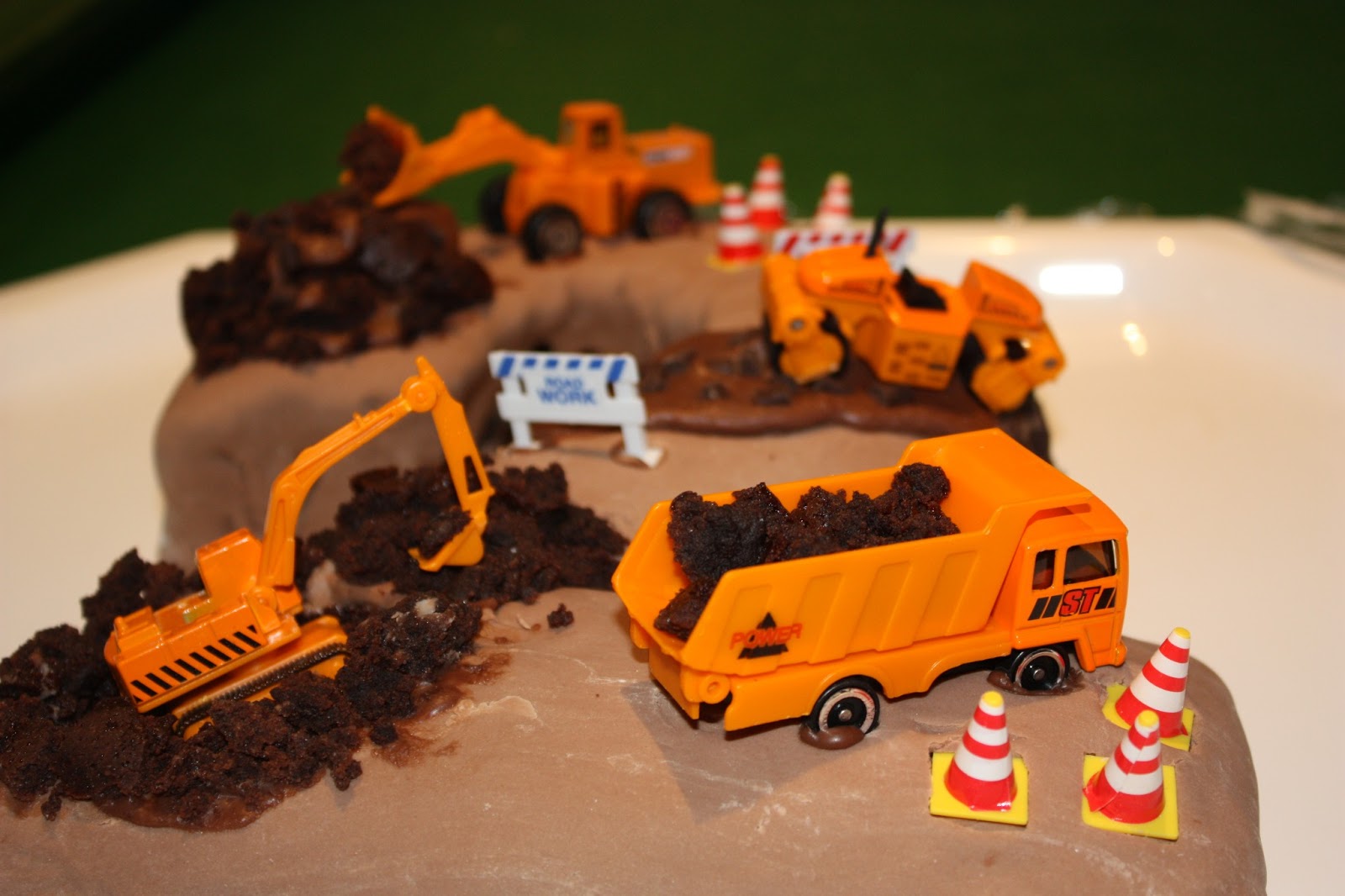 By 2 all of the boys were really into trucks and diggers and building sites….therefore my cake idea was born! Kylan had been given a load of little digger and trucks for Christmas so that made my idea take off!