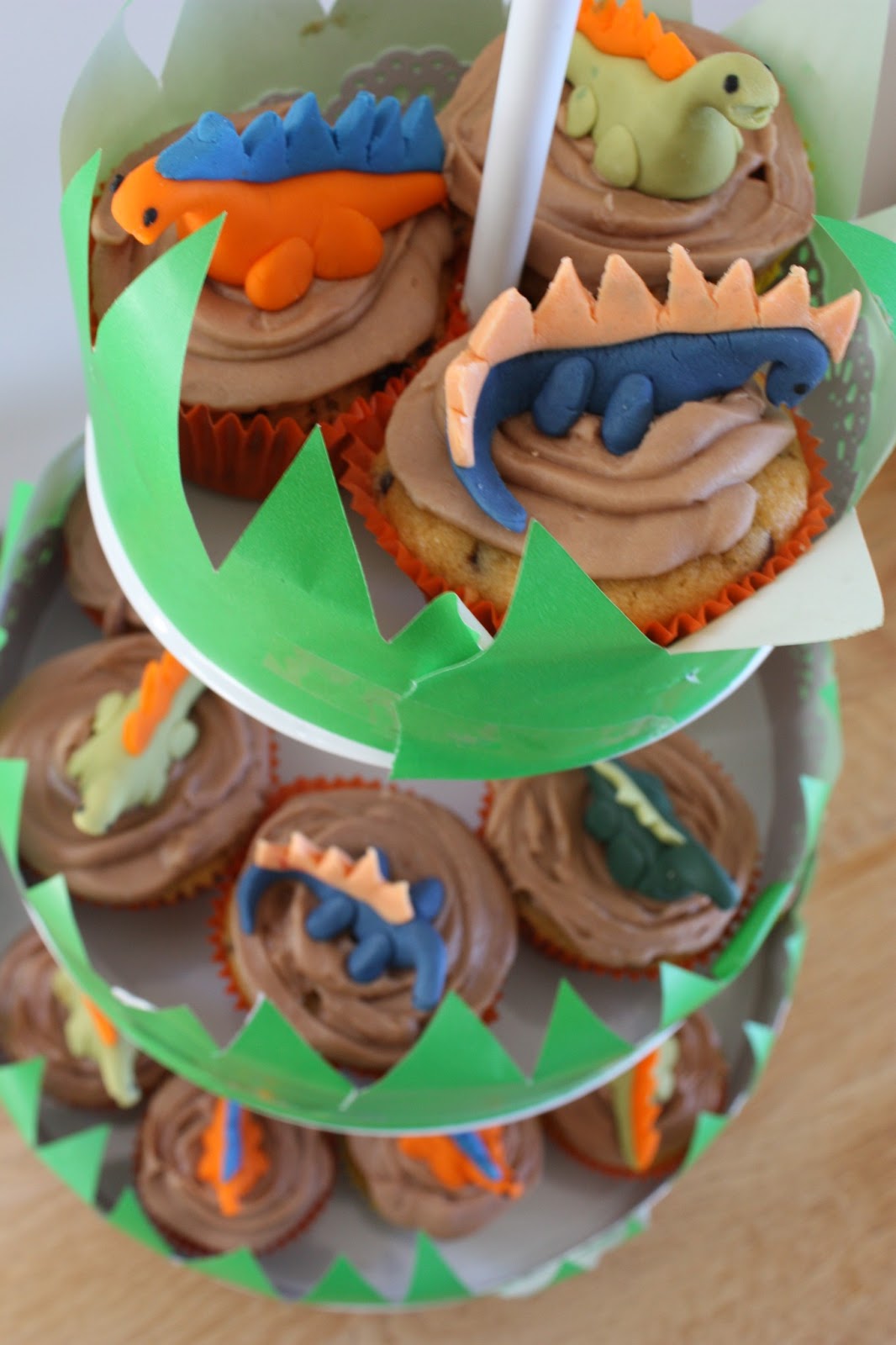 And what party isn’t complete without cupcakes??? These were chocolate chip cupcakes with chocolate butter cream icing and topped with fondant dinosaurs. And as it was a dinosaur party they could not be seen sitting in a pretty white cupcake stand….so grass was added for their comfort.