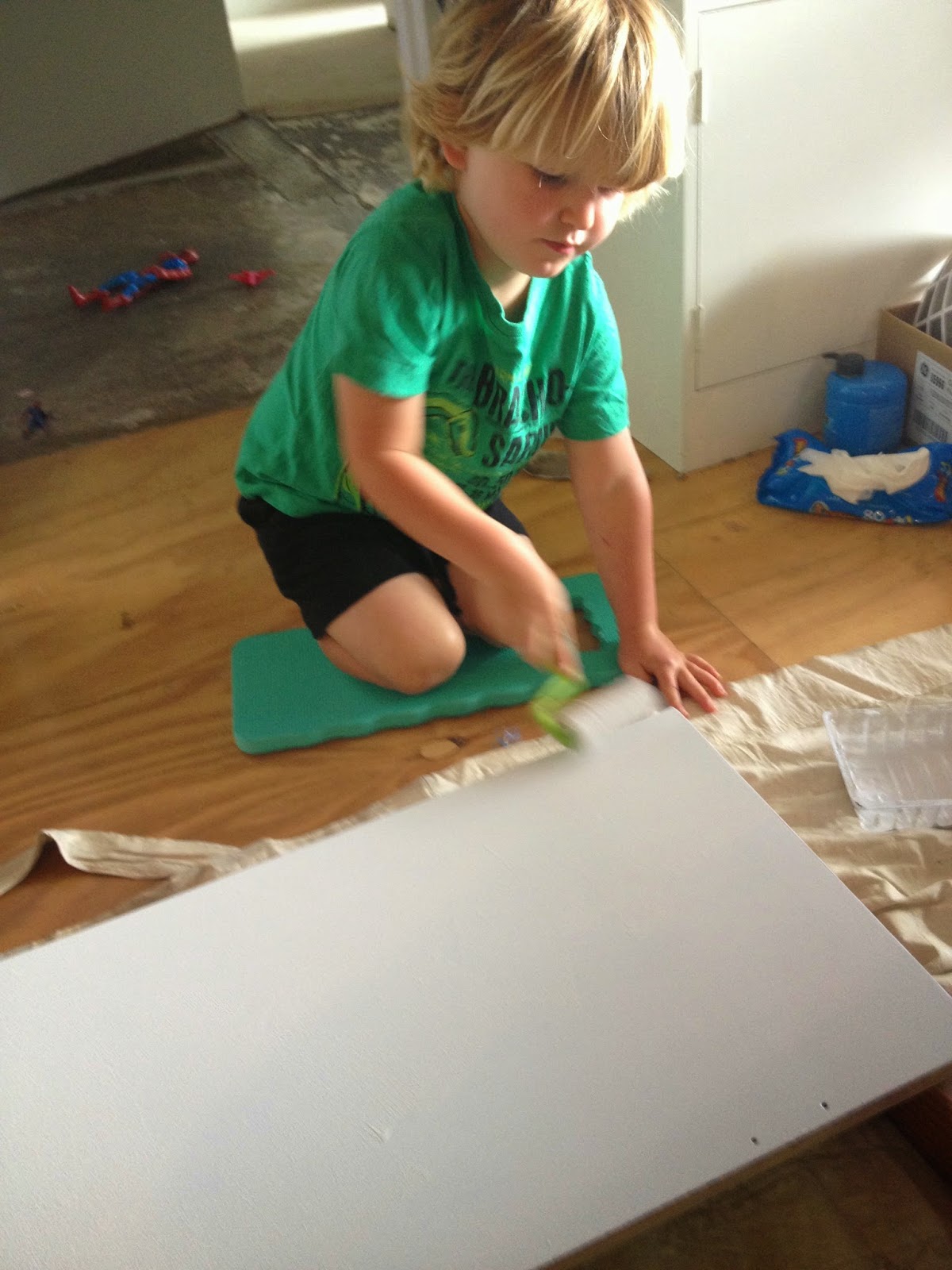 Kylan really wanted to paint it his favourite colour….GREEN! I had to do a little bit of compromising here. I didn’t paint it green as I wanted to be able to use it for years to come without having to redo it when we changed colour themes etc…but when you open it up its a beautiful fun lime green inside.