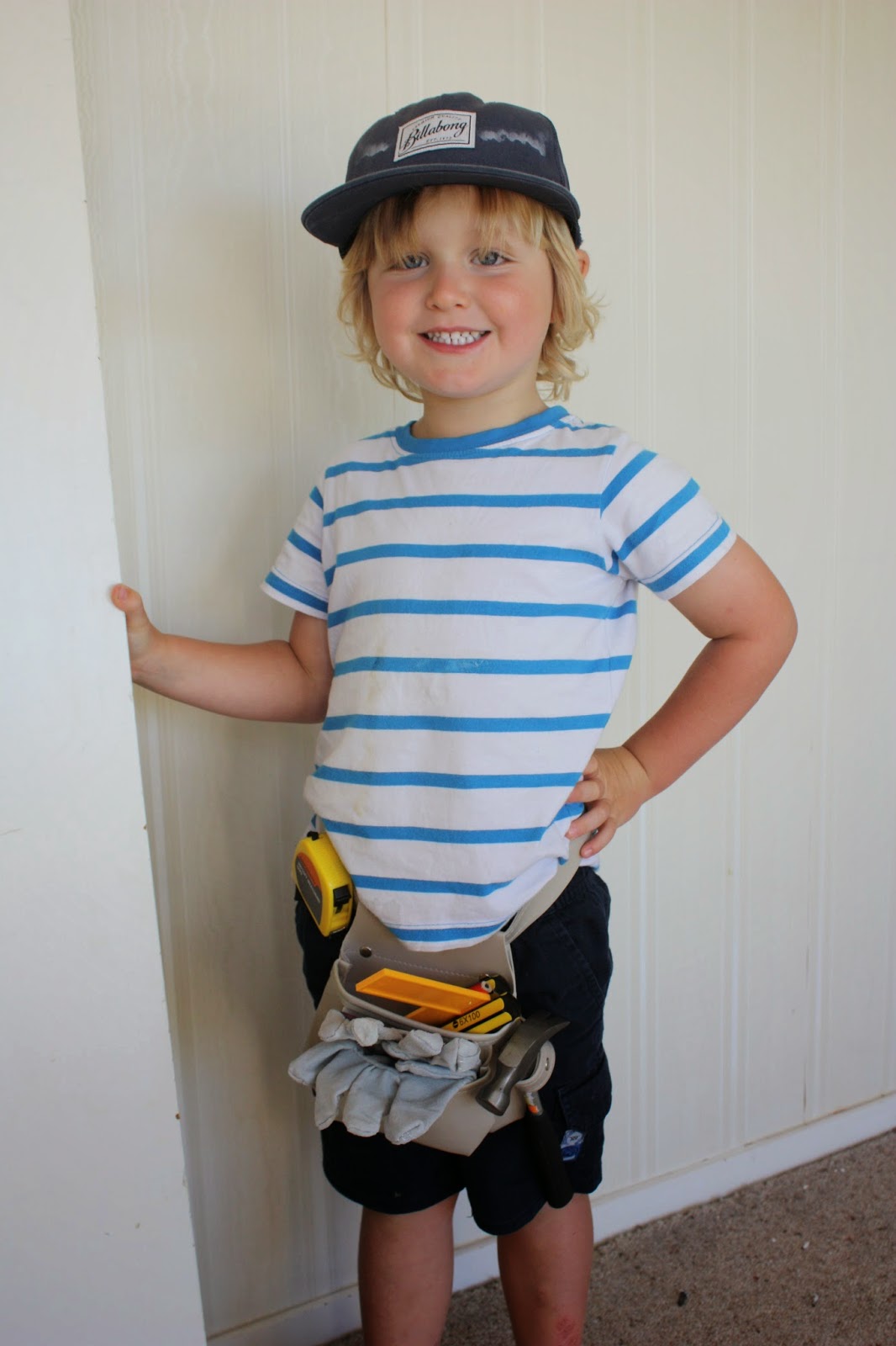 | Our apprentice even has his own tool belt and tools just like daddy and buppy! |