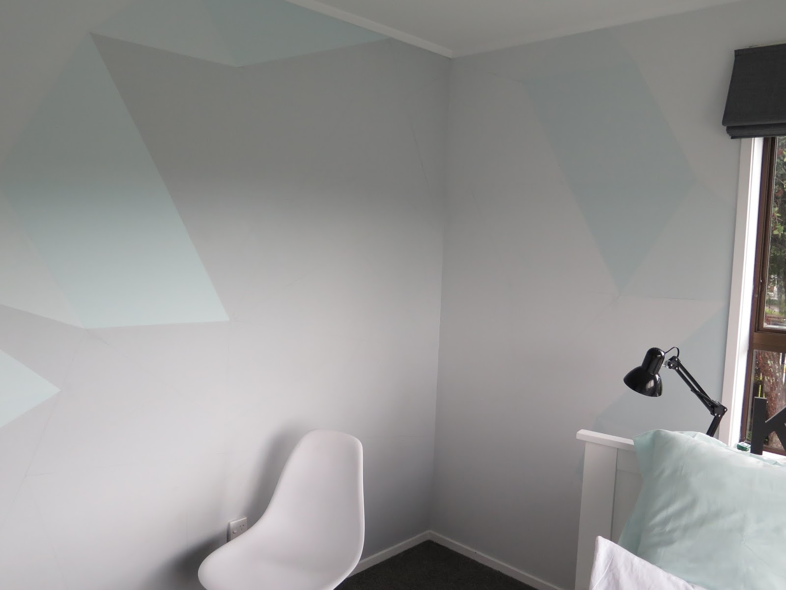 Thanks for all the info!! The wall looks amazing, you did an excellent job. I took your advice and did up my son's room with this geometric design also. I had also encounted the problem of going too dark and having to spend time trying to get the colour back. I tried to ombre it but I didn't do such a good job as you did! I got to a point where I was so over it that I didn't even try to fix it lol. Great advice about the colours looking lighter when wet, I learnt the hard way also. It took me 2 weeks of continuous painting before I finished. It did't look as great as yours but I'm still happy with it. So thank you for sharing!!